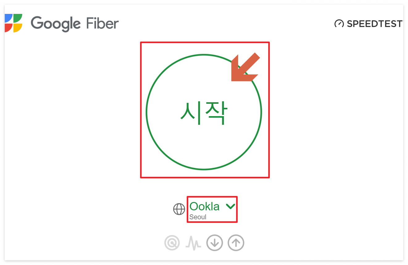 접속하면 화면에는 "시작" 또는 "테스트 시작"과 같은 버튼이 표시됩니다. 이 버튼을 클릭하면 구글 서버로부터 다운로드 및 업로드 속도를 측정하는 테스트가 시작됩니다.